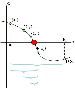 간단하고 견고하며, 근의 대략적 위치를 안다면 일정 오차 내에 있는 1개의 해는 무조건 도출이 가능하나, 상대적으로 느린 방법이다. 구간안에 근이 존재한다는 전제하에 도출하는 방법이므로, 근이 존재하는 구간을 미리 파악하여야 한다.